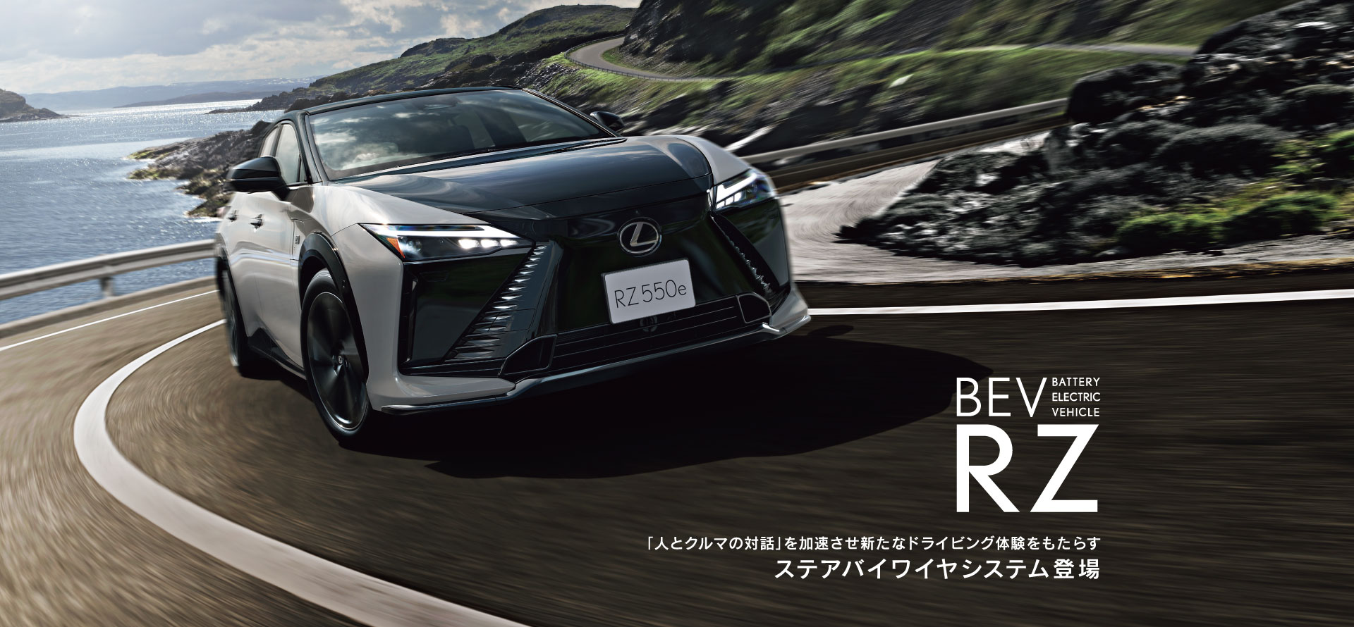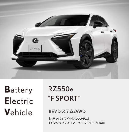 LEXUSではこのたび、RZの新型モデルを発売いたします。BEVシステムを全面刷新し、モーターの高出力化や航続距離の伸長、充電時間の短縮を実現。走りの基本性能、四輪駆動カシステム「DIRECT4」の特性を見直し、走りのコンセプト“THE Natural”を磨き上げ、より自然で気持ちの良い走りの味「Lexus Driving Signature」を深化させました。追加設定した、RZ550e“F SPORT”では、前後モーターの高出力化を施し力強く爽快な走りを追求。LEXUS初採用となる「ステアバイワイヤシステム」と「インタラクティブマニュアルドライブ」を搭載し、新しいドライビング体験を提供いたします。
